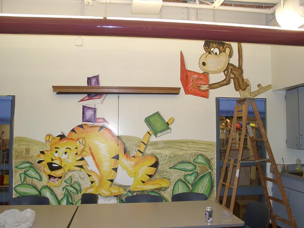 Mural picture 1 donated to the Twin River's Library - Tiger and Monkey Reading