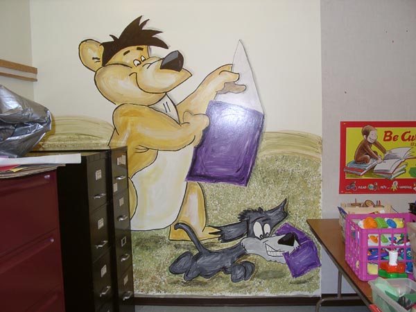 Mural picture 4 donated to the Twin River's Library - Bear and Dog Reading Mural