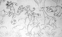 Silly Animals Playing Soccer Mural Sketch |