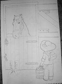 Cowboy Feeding Horse Mural Sketch |
